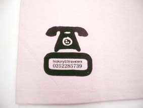 黒でんわ バック ヒッコリーの電話番号が当然プリントしてあります |