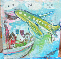 | 【ライブペイント】 本日、ライブペイントやってきました。まだ、風邪も治ってなくてだるかったのですが、せっかくなのではりきってやりました。パスポートセンターオープンということなので、一応飛行機とフネを。そしてパスポートを持つ女の子と男の子。右下には小さく日本です。わりとたくさんの方が立ち止まってみてくれたのですが、絵を描くことにかなり集中したのでほとんど後ろを振り向くことはできませんでしたが。良い運動になりました。きっと明日は筋肉痛でしょう。はやく風邪が治ることを祈ってます。お、気づけばもう10月。はぁ~早いです。もうすぐで結婚式です。楽しみですね~。なので14日はお休みです。で15日も1時からの営業です。 2006.10.01 |