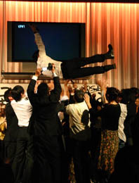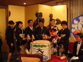 | 【2次会】 さて、久々勤務2日目も終わり昨日の続き。長くてすみません。本日は2次会の話。感動の披露宴のあと、お礼のお見送り挨拶、着替えなどを経て2次会へ。なんだかんだ、やることがあったことこ、へんてこタクシー運転手のせいで、予定の到着時間10時を大幅に遅れ、午後11時に2次会開場である古町4番町のダンスホールナイトに到着。みなさん、待ってました!!とすごい人数(170人くらい)とすごい拍手で迎えてくれました。これまた大感激!!それから、友人のサリー(もちろん日本人)に素晴らしい歌を!!続いて、東京からわざわざ来てくれたマーガレットズロースさんたちによる楽しくて、愛のあるステキな演奏。開場も一つになって大盛り上がり。ほんとよかったです。ありがとうございました。そして、なぜか、2次会まで参加の父と弟と一緒にステージに上げられ、10歳年下の弟から、お祝いのメッセージ。あまりにもしっかりしてて、また、泣いてしまいました。父は、ステージに上がって気持ちがよかったようで、エレキに感動した!!とか、どうとか、気持ちはわかるけど、、、っていうような相変わらずの感じで。気持ちよさそうでよかったです。それから、なぜかサプライズで、みんなで怪物くんの歌を大合唱。なんだかよくわかりませんが、もりあがり胴上げを何回もしてもらい、優勝した気分でしたね。夢のような時間でしたこれも。いろんなびっくりするような友達も来てくれてたし、たくさんの笑顔で祝福されたし。ほんとにステキな1日でした。幹事のみなさんに大感謝です。エンドヲさんもありがとう。もう2度と結婚式はすることはないけど、いいものですね。あーよかった。やっと欧州旅行です。 2006.10.28 |