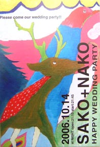 | 【ということで】 written by ハシモト サコの結婚式も無事たのしくすてきに終わり、ひきつづき天気の良い本日。 新郎サコにとっては昨日までと今日では一大イベントが終わったことで気持ち的に違うところがあるのでしょうが、ビジターであるハシモトはいつものハシモトの日々を引き続き送っております。 ちなみに、サコ結婚式前日の夜は映画「ゆれる」を観て、当日の午前中は古畑任三郎の録画を観て、今日は帰りにお米を買って帰んなきゃ、と、まったくマイペースな日々です。 でも、いや、ほんと、昨日はいい日いいお式でした。とりあえず、2枚の写真を掲載しておきます。サコの休暇があけるまでまだそうとう日にちがあるので、結婚式ネタは小出しにしてここを埋めていく予定です。 またしばらくハシモトコラムにお付き合いくださいませ。 よろしくー。 2006.10.15 |