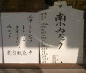 | 【やっと】 written by ハシモト 明日からサコ出勤です。 で、ハシモトは2連休。やったー。 夏休みを取りあぐねてたけど、来月あたまからさらに連休!帰省だ~。 お墓参りと秋吉(焼き鳥屋)は決定だな。で、いつもどおり21世紀美術館に寄ってから帰ろっと。今は川崎和男展やってるからね。 あ~、もう休みモードだ。いえ~い。 甥っ子もおおきくなってるだろうし、じいちゃんのさつまいもも収穫済みだろうし、ひさしぶりのアイツにも会えるし、楽しみだー。 そして、今回は川崎和男展の流れでタケフナイフビレッジに行ってみよ。 いいねいいね、いいプランです。 ココの欄は明日からしばらくはサコ自身の言葉で今回の結婚式と旅行のことが綴られるんだろうね。きっとね、絶対ね、必ずね。 ヨーロッパな画像がアップされると思いますんで、その前に我が故郷の写真を1枚。。。 前回帰省したときに撮影しました。 武生(タケフ)市柳町。実家の隣の洋品店のPOP(?)です。 小さい画像なのでよくわからないかもしれませんが、「トレシャツ」「トレパン」って書いてあります。もちろん「ズック」です。 2006.10.26 |