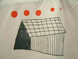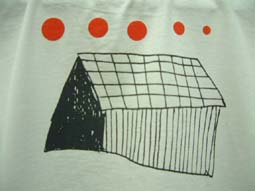 | 『家』 喫茶店で何気なく描いた家のイラストを元に制作したデザイン。 Tシャツバージョン。赤と灰色の組み合わせが結構いい感じです。 Tシャツ 2800円 |