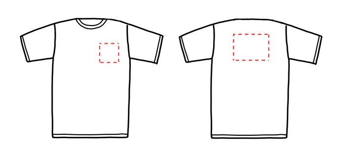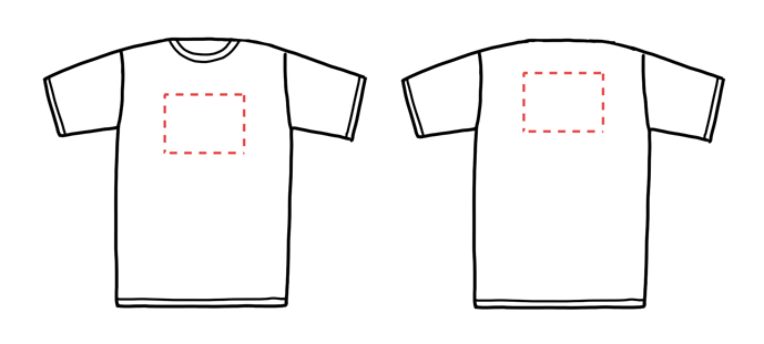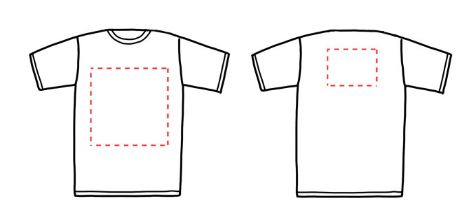 | ・フロント プリント : 34cm×34cm以内 ・バック プリント : 21cm×21cm以内