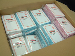 結婚式パーティープレゼント手ぬぐいとパッケージ。この時は「そびえとvol.03」を使用
